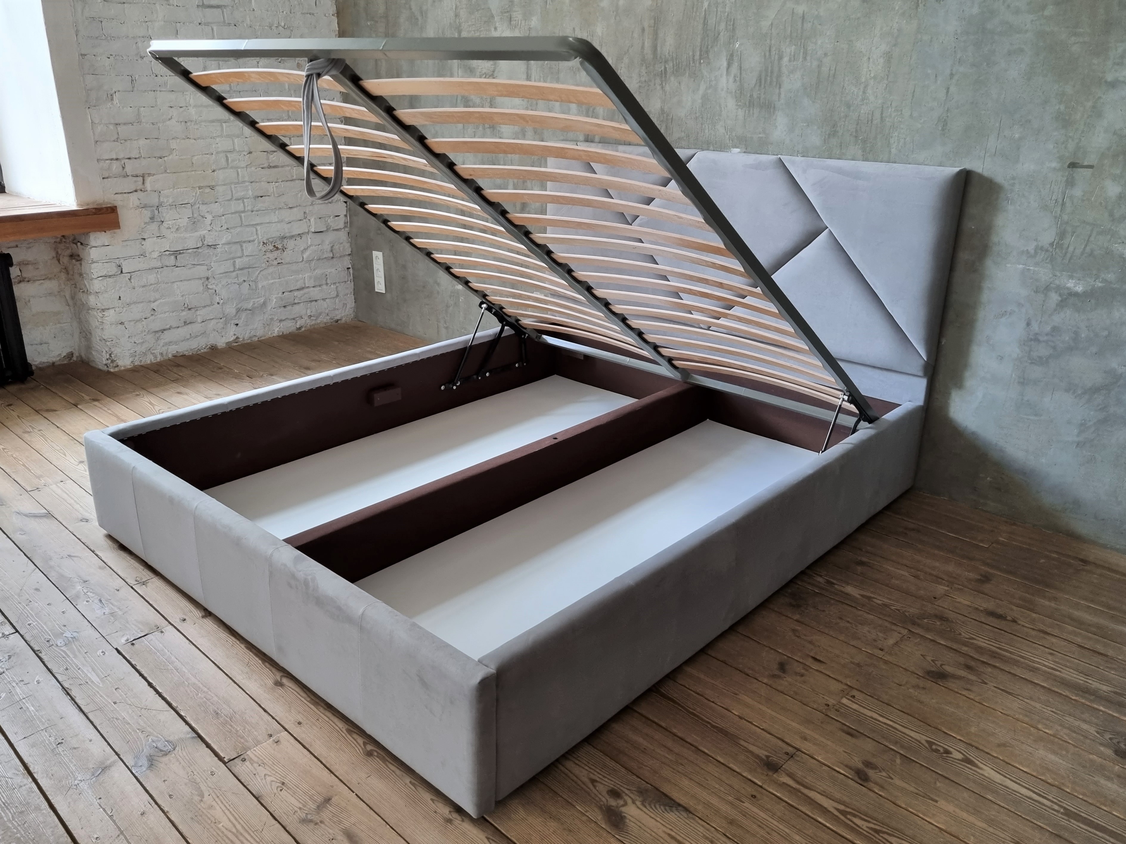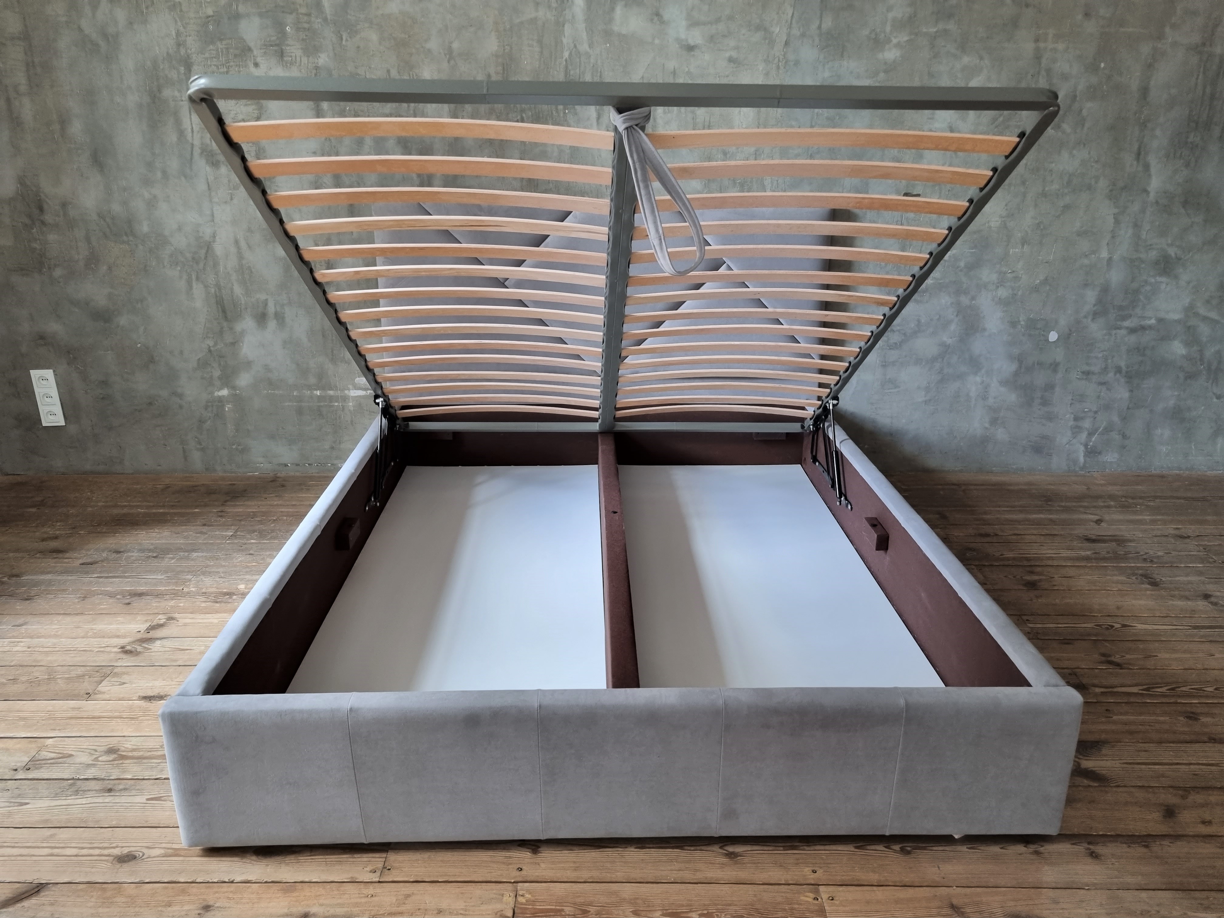У комплектації з підйомним механізмом ліжко оснащене глибоким коробом для зберігання білизни, що дозволяє використовувати простір під ліжком як додаткову шафу для зберігання.