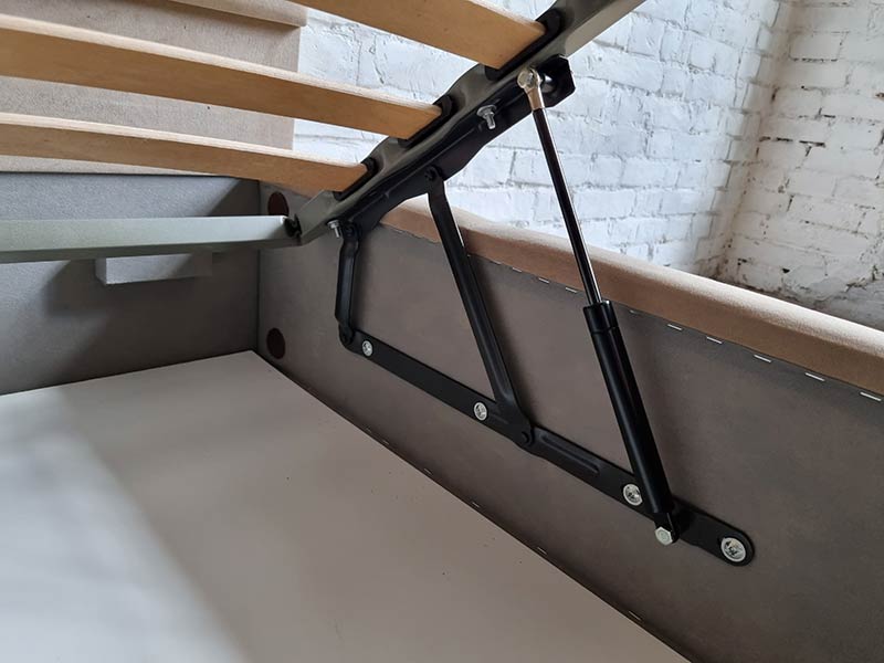 Ліжко можна додатково обладнати підйомним механізмом із надійними газліфтами, що витримують 1200 - 1500 Н. Це дозволяє навіть дитині легко підняти каркас разом з матрацом, гарантуючи безпеку завдяки плавному ходу механізму.