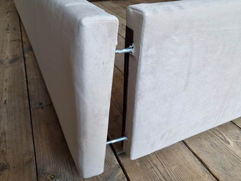 Конструкція наших ліжок з'єднана металевими штифтами, що забезпечує надійну фіксацію. Це дозволяє багаторазово розбирати та збирати ліжко без втрати міцності, на відміну від моделей, де використовуються куточки, які можуть слабшати з часом.