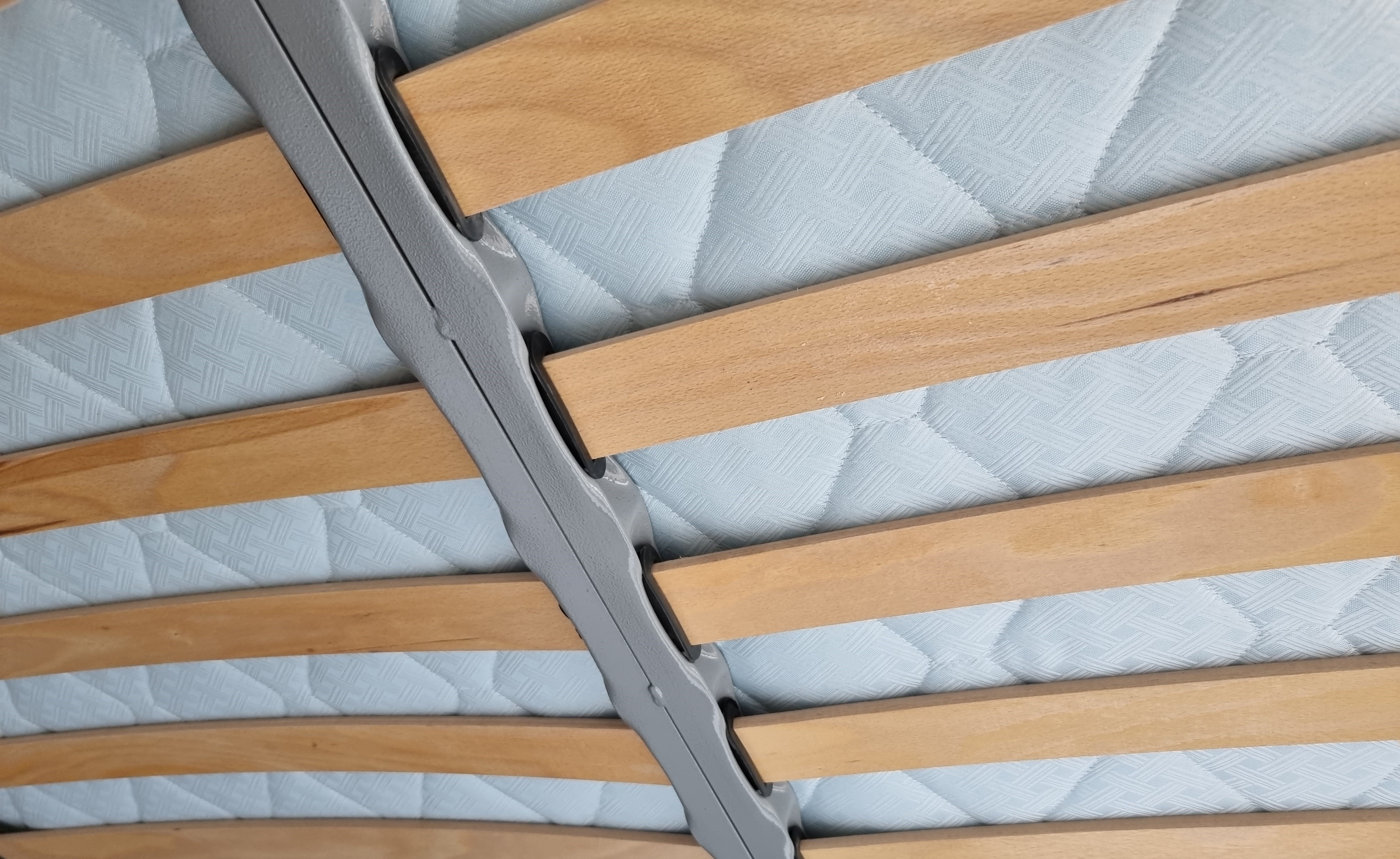 Ми використовуємо широкі ламелі з натурального бука, які значно міцніші за інші, виготовлені з таких деревних порід, як береза або вільха. Вони можуть витримувати навантаження понад 150 кг на одне спальне місце.